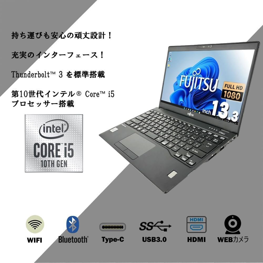 Fujitsu Ultra Flirty Laptop Lifebook U9310 13.3 Typeは、軽量でスタイリッシュな設計、卓越した性能、高精細ディスプレイ、多彩な接続オプション、最新のオペレーティングシステムとソフトウェアを備えた、抜群のラップトップです。ビジネスユーーから日常利用者まで、幅広いユーーに適した製品です。移動に便利で、快適な視覚体験とスムーズな操作を提供するため、注目を集める製品となっています。