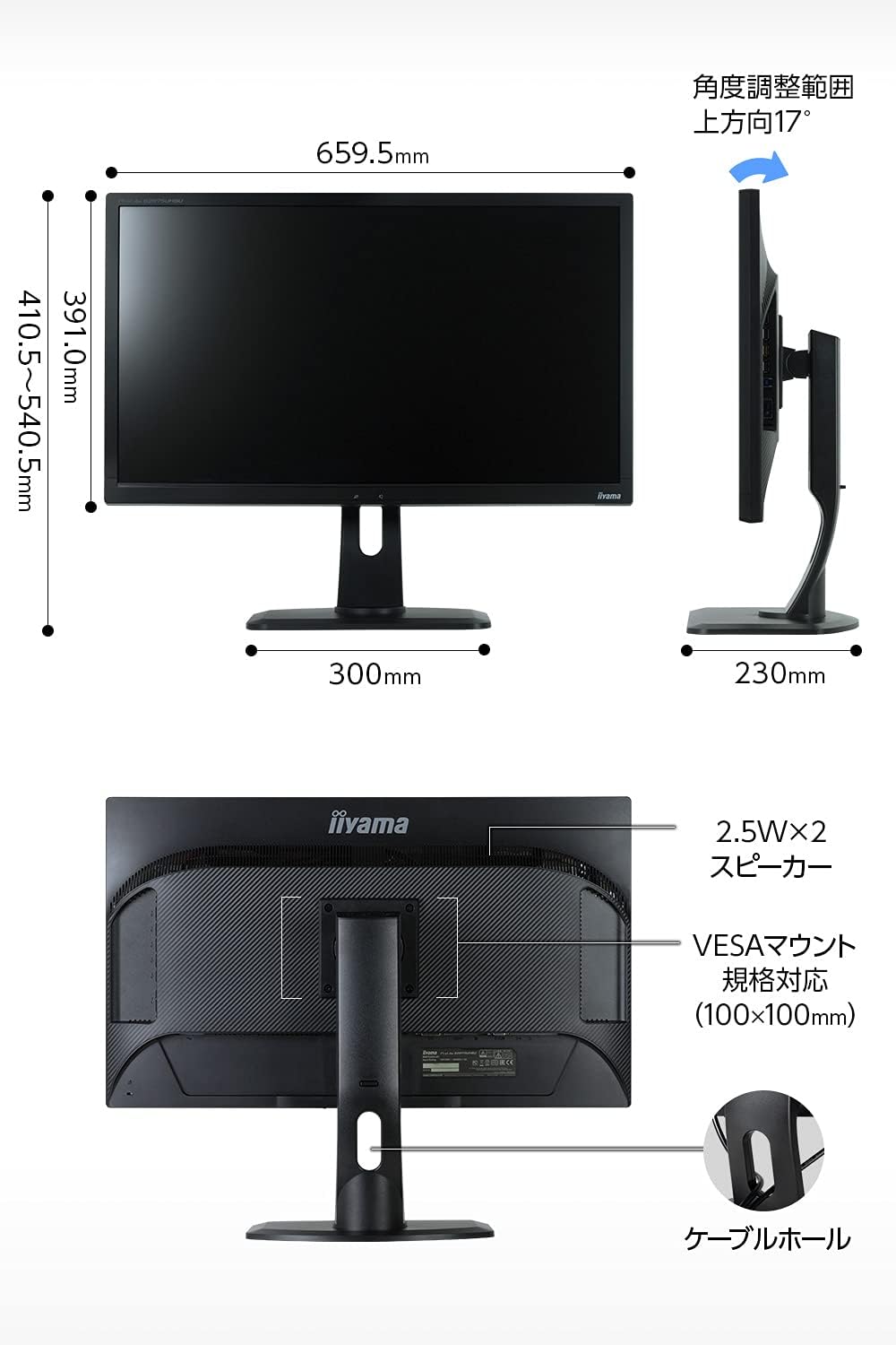サイズ(幅×奥行×高さ):25.6 – 21.3×9.1インチ(659.5×410.5 – 540.5×230.0mm)